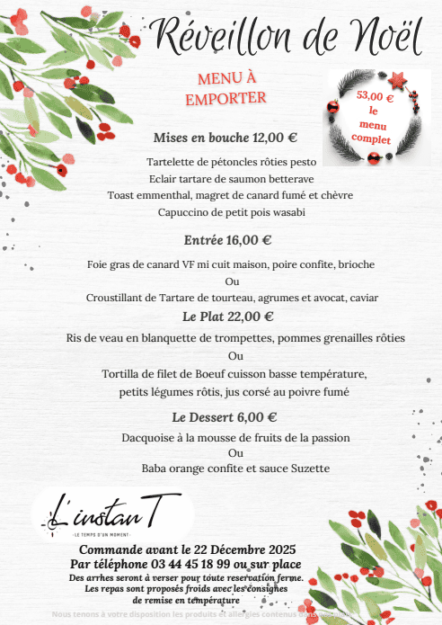 Pour Noël, votre restaurant bistrot l’Instan T vous a concocté un menu spécial à emporter. Des mets d’exception en 4 services pour célébrer une fête en famille (ou entre amis).